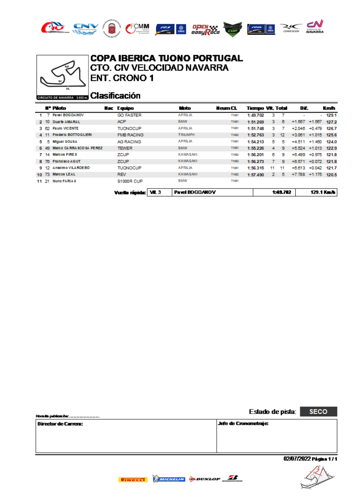 Alguns conseguiram ainda aproveitar os treinos livres da tarde de quinta-feira, para se ambientarem a uma pista caracterizada pela curva 1 mais rápida de entre todos os circuitos espanhóis (e Portugueses), pelo seu miolo lento e técnico, mas também pelo seu asfalto cheio de ressaltos. Nuestros hermanos Marco Perez #49 y Francisco Agut #76, bem como, Paulo Vicente #62 e Nuno Farias #21, já conheciam o circuito, mas tal não fez diferença, como veremos. Destes, notou-se a ausência de Farias, que motivos profissionais obrigaram a desistir em cima da hora. Acontece, mas tal obrigou à anulação do pódio da S1000R Cup.