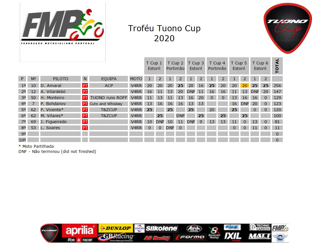 Classificação TUONO CUP Após Estoril CNV6 – MCE – 23/25 Outubro