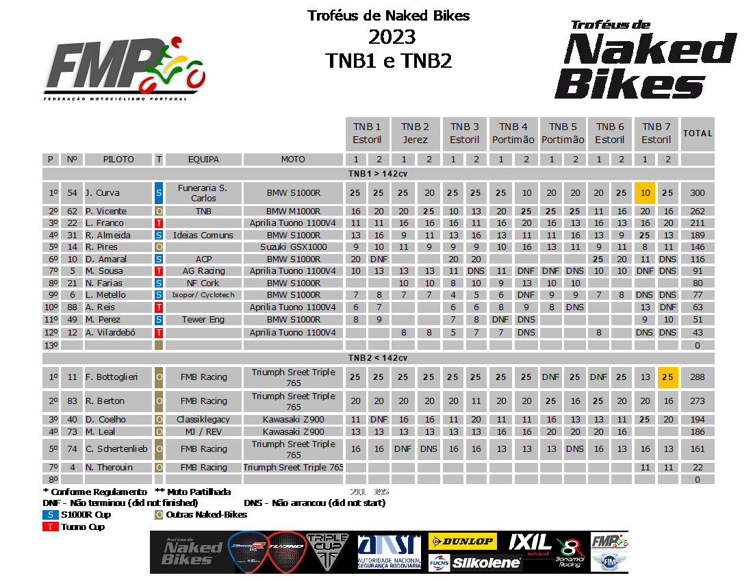 Classificação TNB Após Estoril IV TNB 7 – MCE – 28/29 Outubro