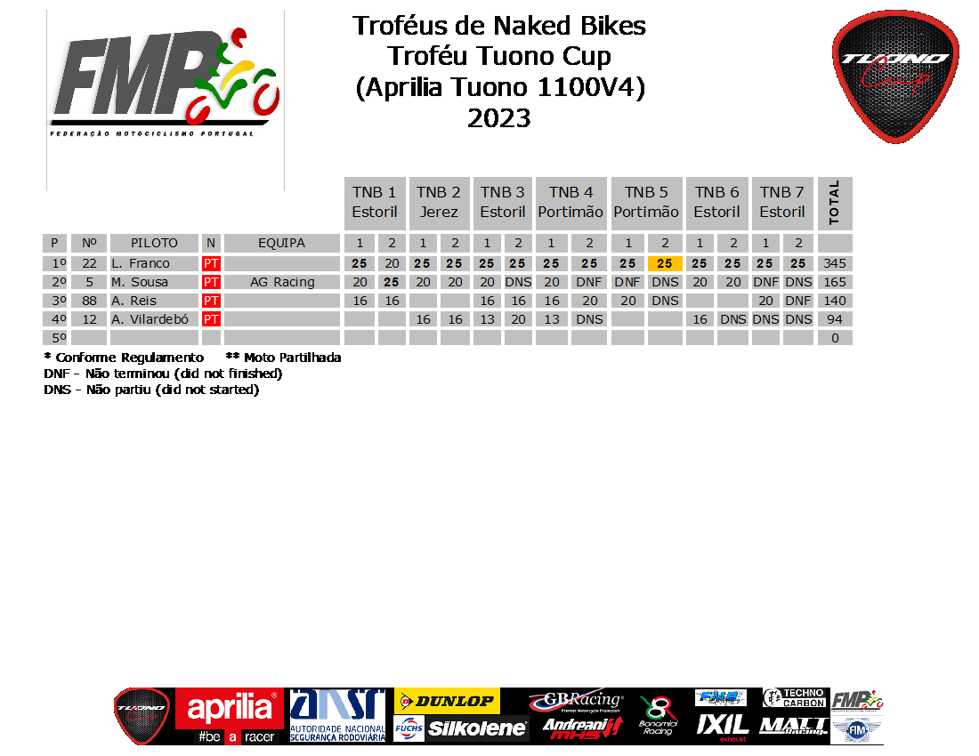 Classificação TuonoCup Após Estoril IV TNB 7 – MCE – 28/29 Outubro