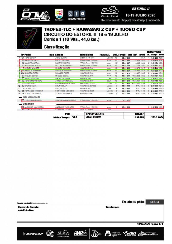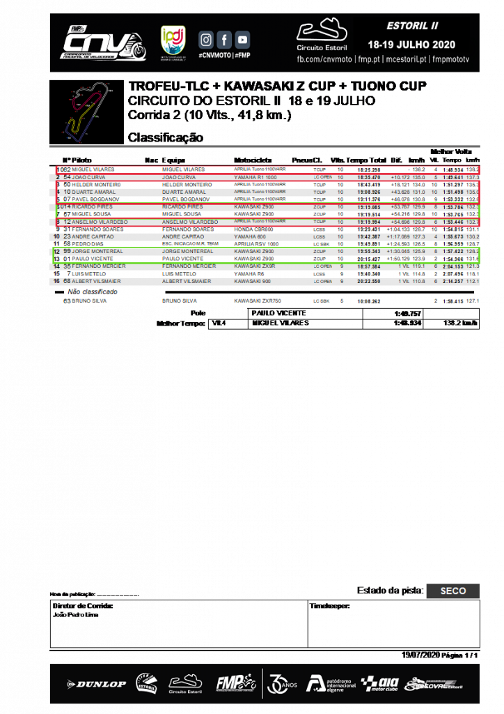 Neste fim-de-semana de 18 e 19 de Julho, as Tuonos 1100V4RR da TUONOCUP, regressaram ao Estoril, acompanhadas das Zs da ZCUP, e, no que já começa a ser habitual, com as semi-clássicas do troféu TLC, para a 3ª ronda dos Troféus de Naked Bikes, integrados no CNV Moto, ainda com todas as medidas de segurança e restrições impostas pela pandemia do Covid-19.