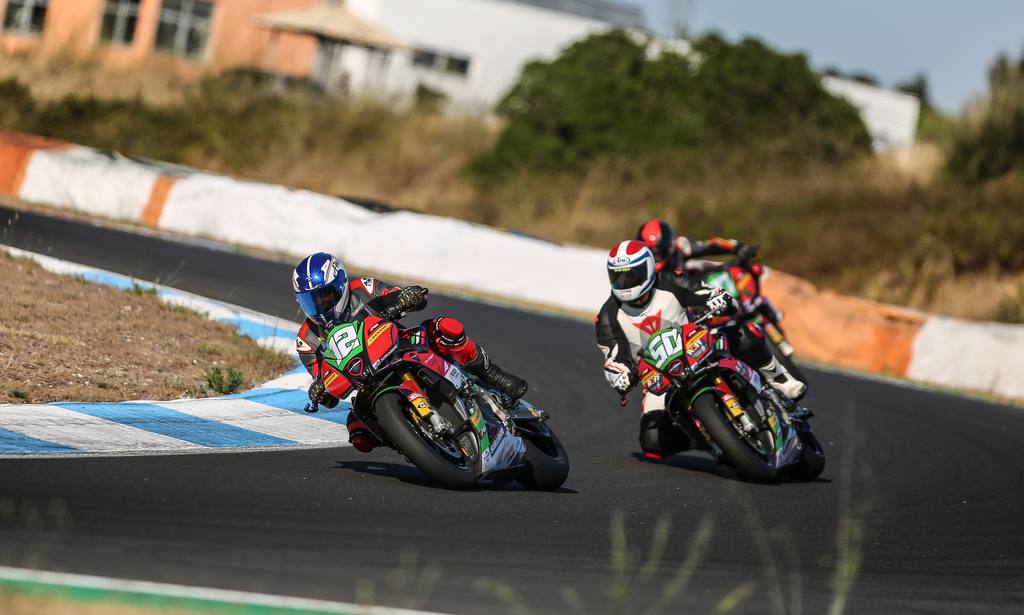 Depois de uma noite a recuperar a Tuono de Vilardebó, o warm-up serviu sobretudo para este confirmar que “estava tudo no lugar”, tanto em si como na moto, para Vilares reambientar-se à Tuono #62 e para Pires “afinar umas coisas” na sua Z.