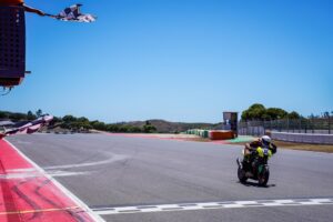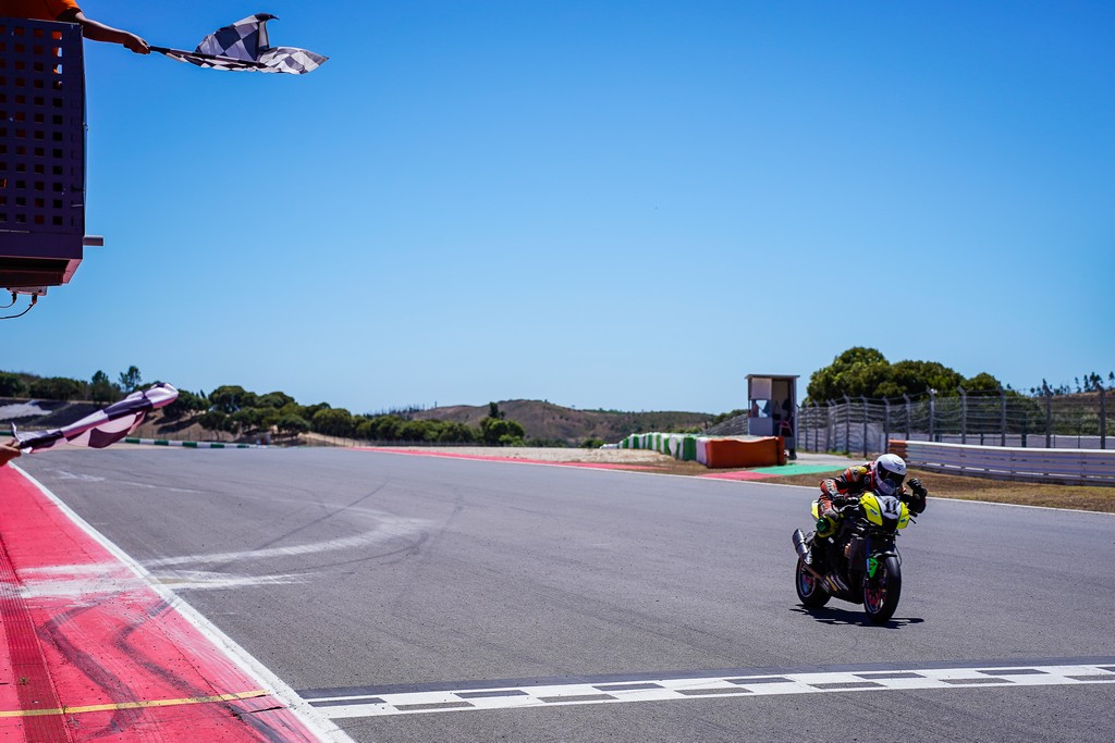 La Z900 de Coelho, después de una salida extraordinaria que le llevó a la cuarta posición de la general hasta la curva 3, fue bajando en la clasificación hasta encontrarse con la S1000R de Farías con la que mantuvo un duelo hasta el final, logrando incluso mantenerse al frente de ella y batiendo también su récord personal en Portimão, mostrando una excelente evolución. ¡Felicidades!