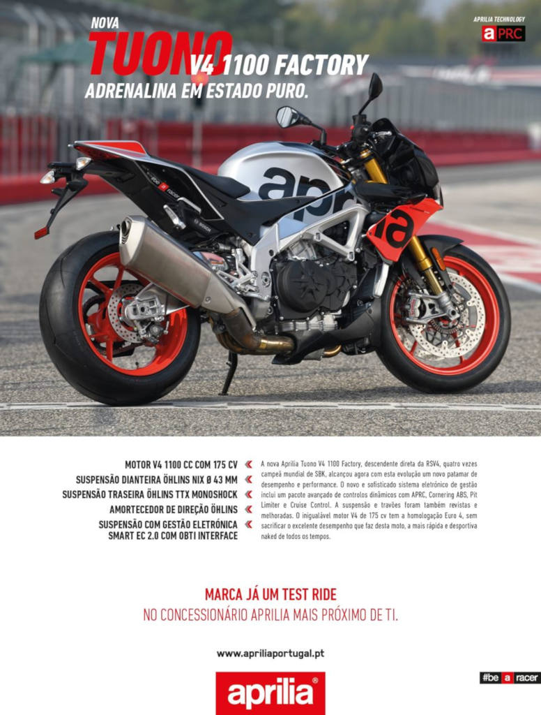 El último trofeo de marca individual incluido en el Campeonato Nacional de Velocidad fue presentado oficialmente en Officina Moto en Lisboa. En la casa del importador de Aprilia, Paulo Vicente dio a conocer el primer Tuono V4 1100 preparado para participar en la Copa Tuono, además de nueva información sobre este trofeo con los powenakeds italianos.